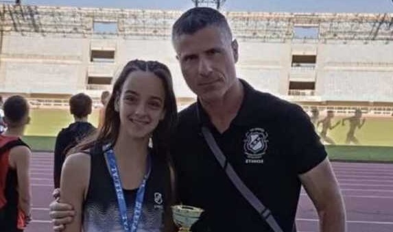 *Στην φωτογραφία, η 13χρονη αθλήτρια του ΟΦΗ Παρασκευή (Εβελίνα) Μακατουνάκη, με τον προπονητή της, στο τμήμα στίβου του ΟΦΗ, Γιώργο Οικονομάκη.