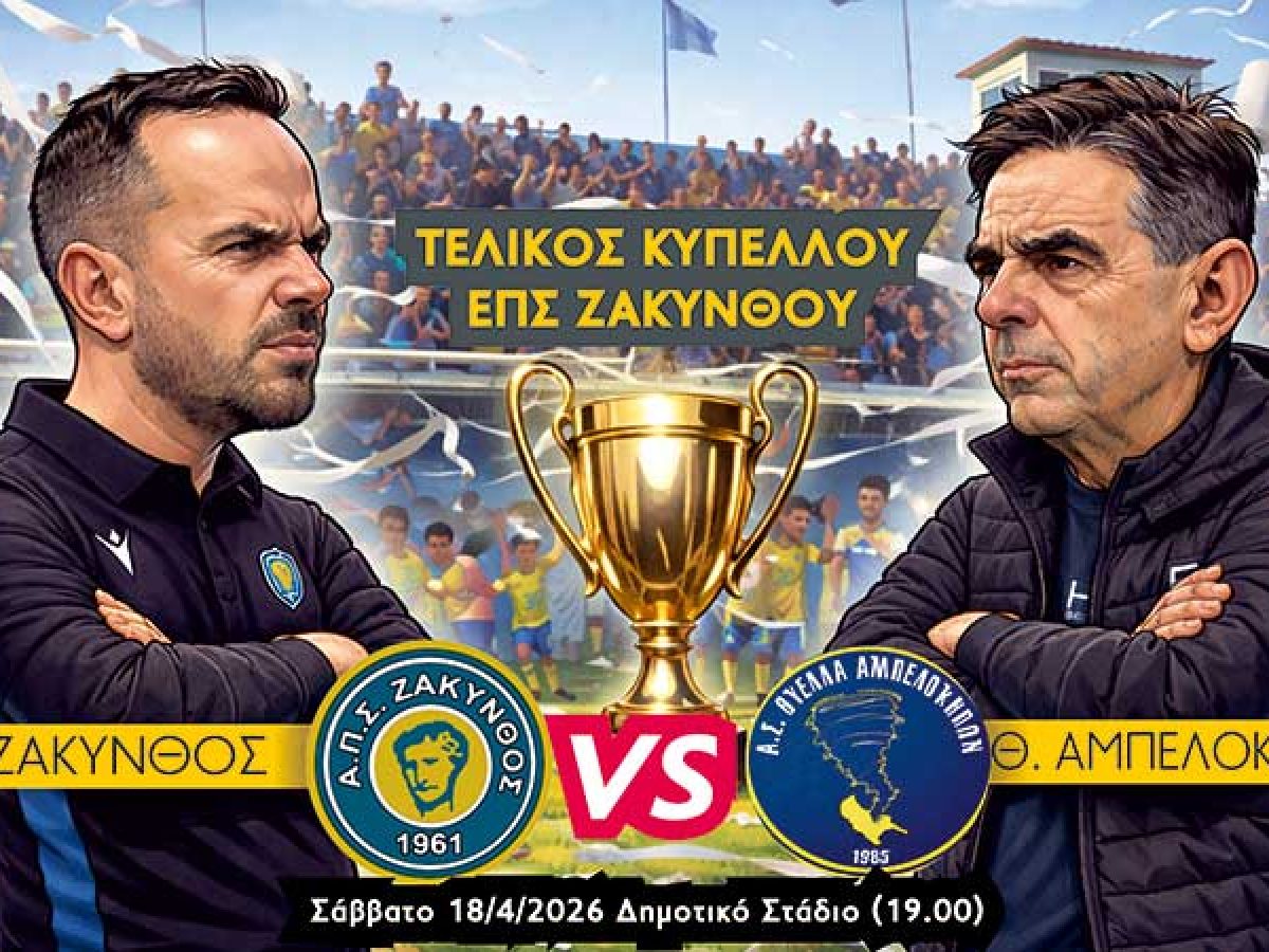 Ο ΑΠΣ Ζάκυνθος και η Θύελλα Αμπελοκήπων ρίχνονται το απόγευμα του Σαββάτου (18/4/26) στη «μάχη» του Δημοτικού Σταδίου, διεκδικώντας το τρόπαιο του Κυπέλλου ΕΠΣ Ζακύνθου.