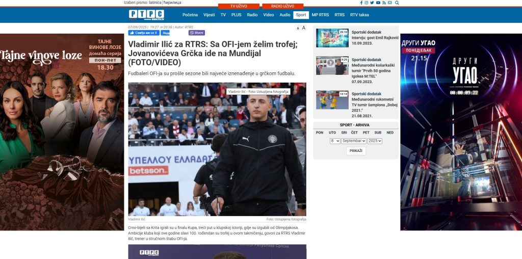 Ο συνεργάτης του Μίλαν Ράσταβατς παραχώρησε συνέντευξη στον τηλεοπτικό σταθμό της πατρίδας του RTRS και είπε αρκετά για την παρουσία του στον ΟΦΗ.