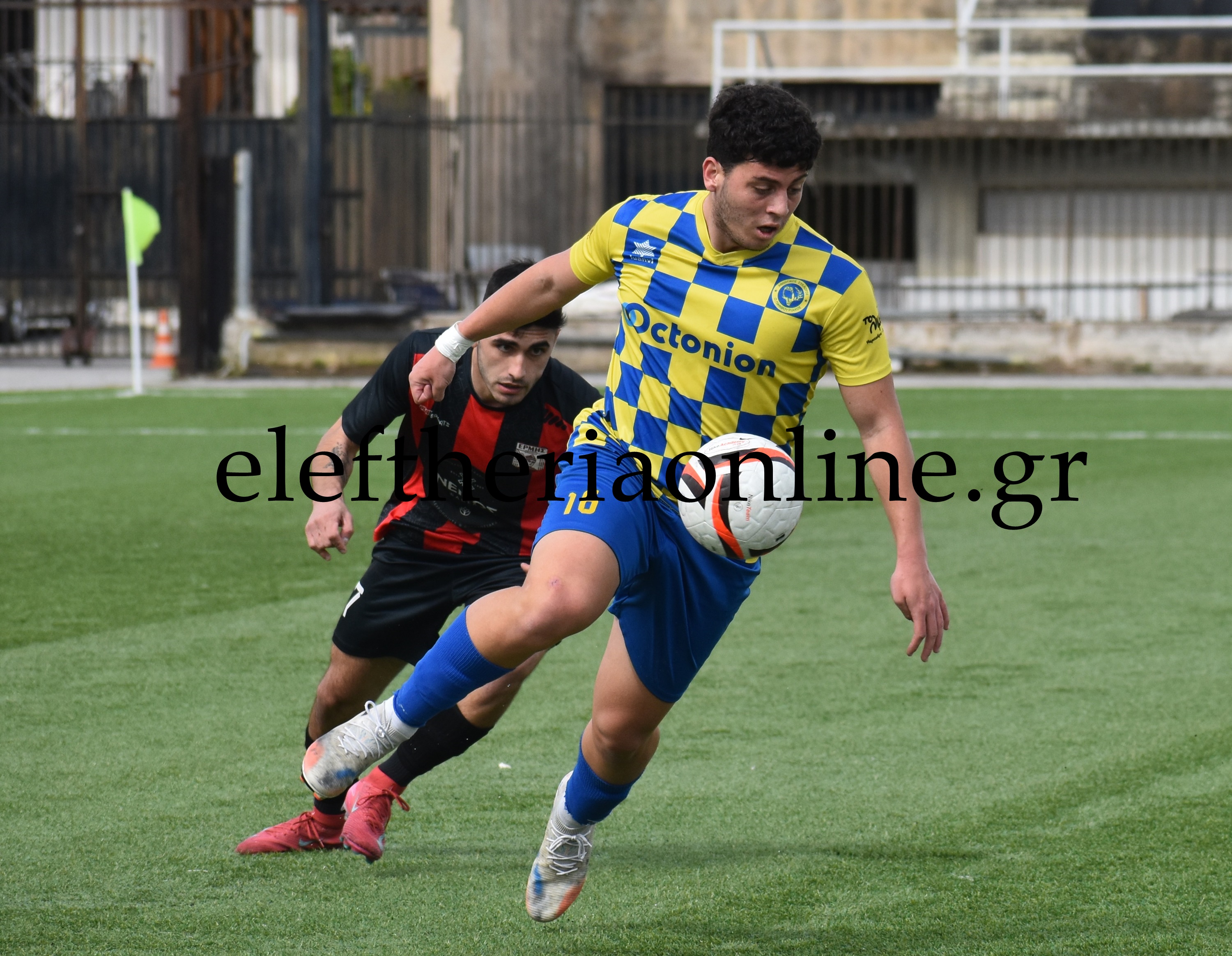 Στο 37’, όμως, ο Αγγελής άνοιξε το σκορ (1-0) με ένα υπέροχο τελείωμα. Μετά από λανθασμένη απομάκρυνση του Νάνου, έπιασε καλοζυγισμένο βολέ με το δεξί μέσα από την περιοχή, δίνοντας το έναυσμα για ξέφρενα πανηγύρια στην κερκίδα. Στο αμέσως επόμενο λεπτό, νέα απειλή για την εστία του Ερμή Μελιγούς, όταν από σέντρα του Γεωργέα ο Αγγελής πήρε την κεφαλιά, με τον Κ. Γιαννούση να διώχνει ενστικτωδώς σε κόρνερ.