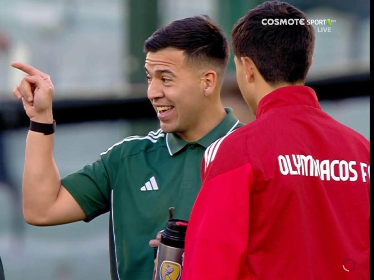 Η κάμερα της Cosmote TV τον… «συνέλαβε» σήμερα, λίγη ώρα πριν τη σέντρα στο ντέρμπι των αιωνίων στη Λεωφόρο να κάνει την αναγνωριστική του βόλτα στον αγωνιστικό χώρο με το θερμός του ανά χείρας.