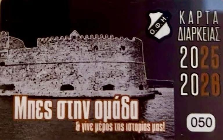 Η διάθεση των εισιτηρίων διαρκείας για την αγωνιστική περίοδο 2025-2026 συνεχίζεται με εντυπωσιακό ρυθμό, καθώς η ανταπόκριση του κόσμου είναι μεγάλη! Ο ΟΦΗ ετοιμάζεται για μια απαιτητική σεζόν και θέλει δίπλα του τον κόσμο του, σε κάθε εντός έδρας παιχνίδι.
