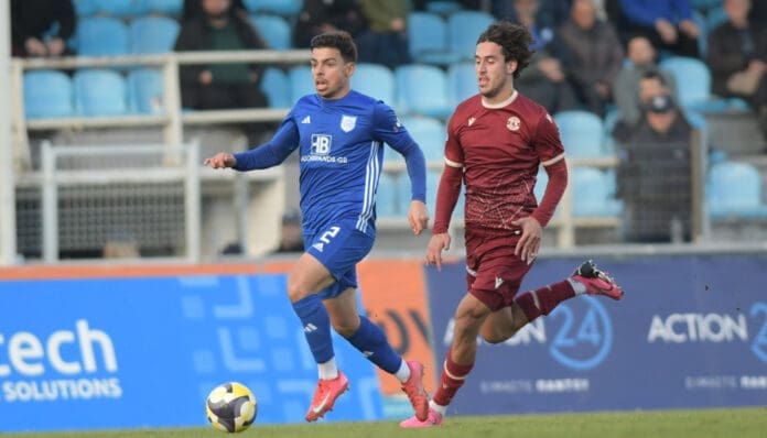 Ο ίδιος παίκτης στο 67’ έπιασε σκαστή κεφαλιά από σέντρα του Ναούμη, αλλά η μπάλα έφυγε λίγο άουτ.
