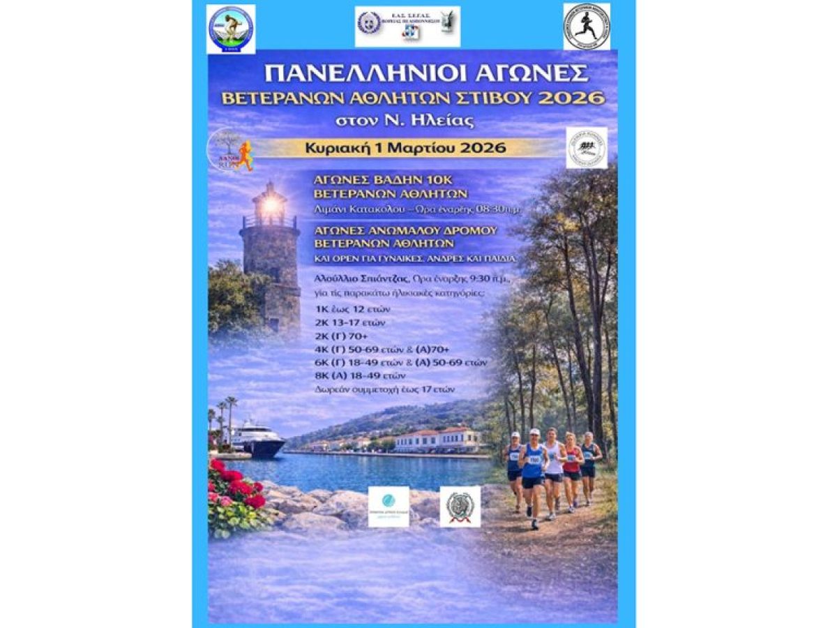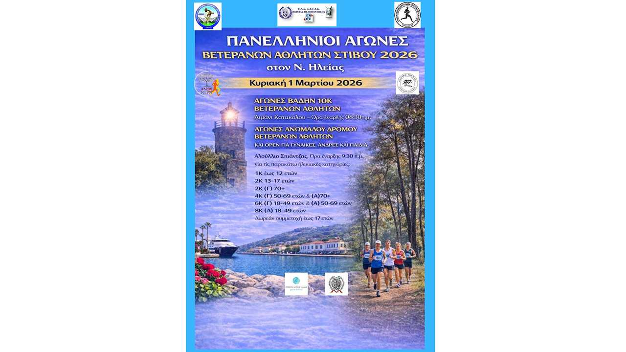 Την Κυριακή 1 Μαρτίου θα διεξαχθεί το Πανελλήνιο Πρωτάθλημα Ανωμάλου Δρόμου Βετεράνων αθλητών και open 2026. Ακολουθεί η ανακοίνωση της διοργάνωσης.