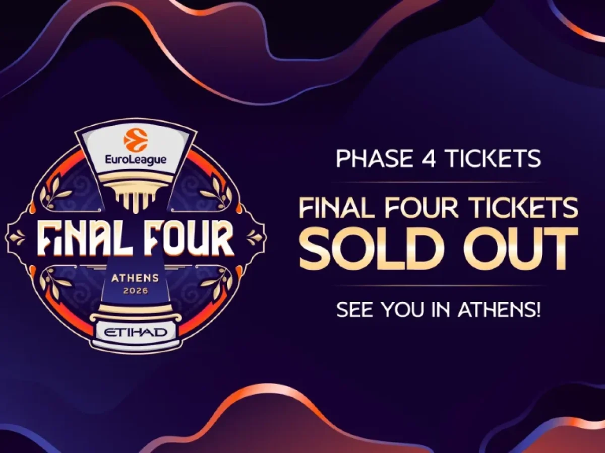 Η άνευ προηγούμενου ζήτηση για το Final Four της EuroLeague 2026 στην Αθήνα, που παρουσιάζεται από την Etihad, έχει φτάσει στο απόγειό της, καθώς όλα τα εισιτήρια που διατέθηκαν στο ευρύ κοινό, συμπεριλαμβανομένης της τελικής κυκλοφορίας της Φάσης 4, έχουν επίσημα εξαντληθεί.
