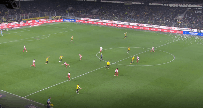 Ο λόγος; Φυσικά, ότι ήθελαν να βγάλουν οφσάιντ πεντακάθαρα τον Ραζβάν Μαρίν, απ’ το κόρνερ που κέρδισε στη συνέχεια της φάσης και προήλθε το γκολ της ΑΕΚ και έτσι επέλεξαν, να βάλουν γραμμές σε καρέ, ως άλλο… ημι-αυτόματο οφσάιντ.