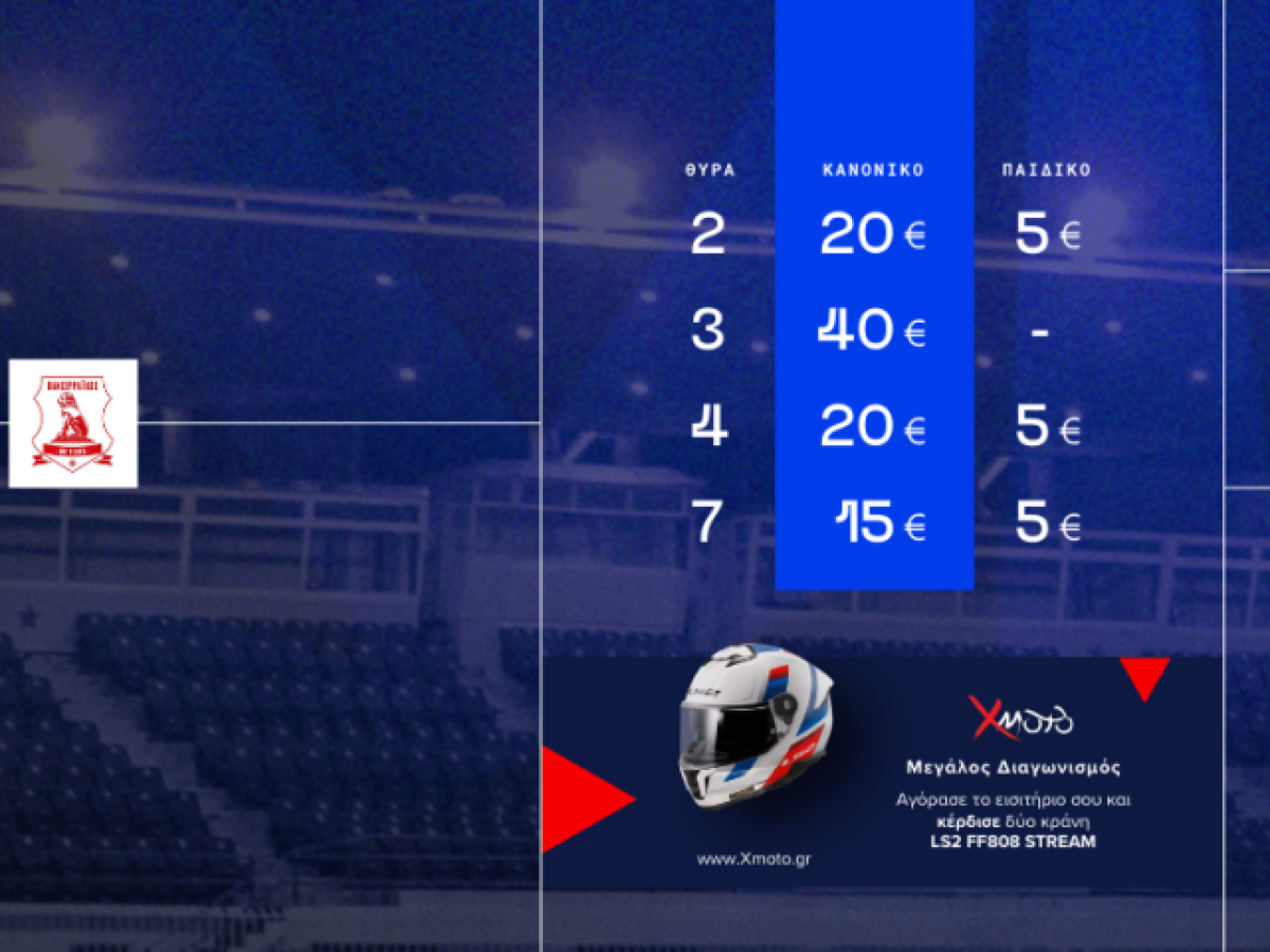 • Μεγάλος διαγωνισμός! Μαζί με την αγορά του εισιτηρίου, μπαίνετε και στον διαγωνισμό για να διεκδικήσετε δύο κράνη LS2 FF8o8 STREAM, προσφορά από την X Moto